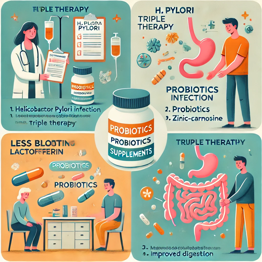 병원에서 항생제 치료를 받고 있다면, 이 시기에 도움이 되는 보조제는 락토페린, 아연카르노신, 프로폴리스처럼 헬리코박터 억제 및 위점막 보호 작용이 있는 성분입니다.