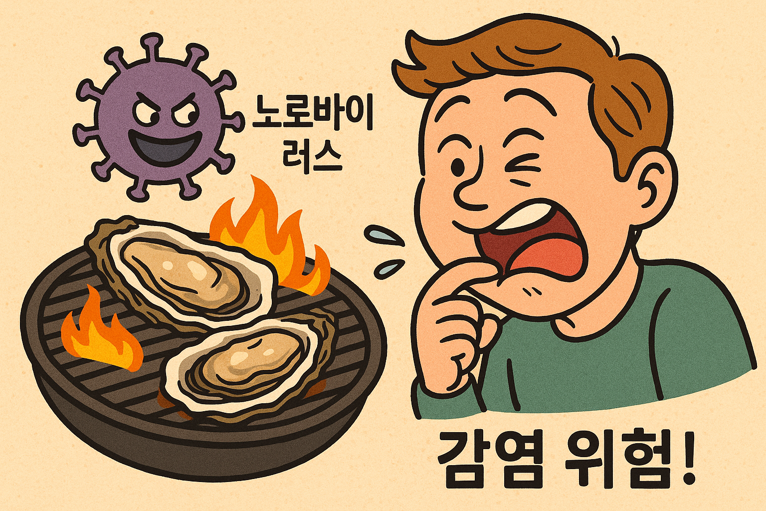| 생굴·조개류가 위험한 이유 | 오염된 해역에서 자라는 굴은 사람 배설물이 섞인 바닷물 속 노로바이러스를 여과하면서 몸속에 축적해, 날로 먹을 때 그대로 들어올 수 있음 |